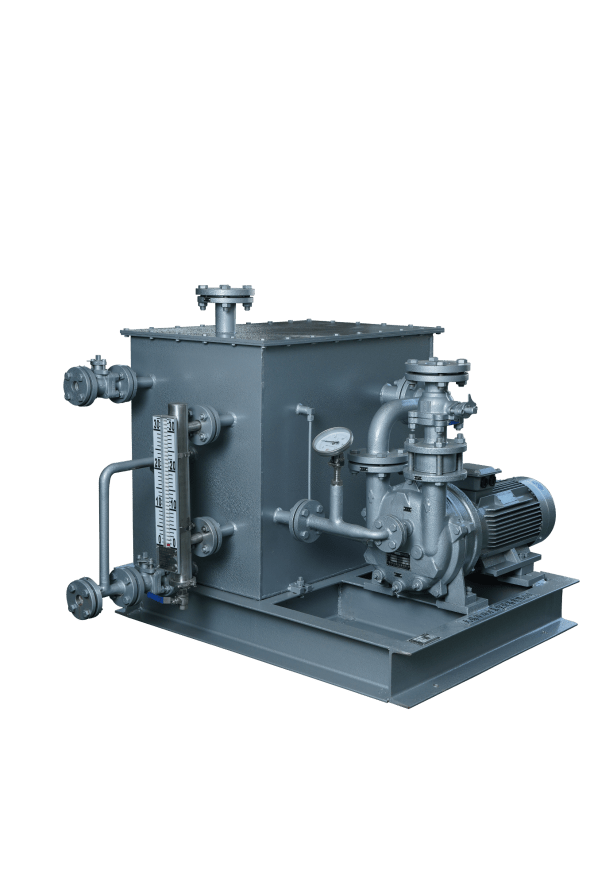 J2SK, JSK and J2BE closed circulating vacuum units include: vacuum pump, gas-liquid separator, heat exchanger, circulating pump, control system and other accessories. The use of vacuum pumps can be effectively increased by using working fluids other than water (e.g. liquids with lower saturated pressure such as ethylene glycol and transformer oil) than water. At the same time, it avoids the disadvantage that 2SK, SK, 2BE and other common liquid ring vacuum pumps are often used to extract some gases which pollute the working fluid, resulting in large amount of discharge of working fluid of vacuum pump, thus reducing the cost of customers. J2SK, JSK and J2BE closed cycle units can completely isolate the exchange between process gas and atmospheric environment, and discharge process gas to designated locations to avoid environmental damage. It is especially suitable for extracting inflammable, explosive and toxic gases.