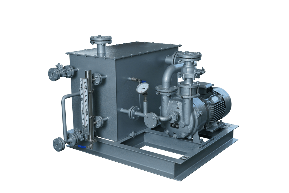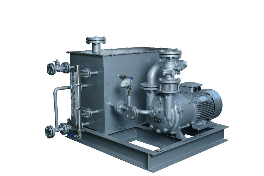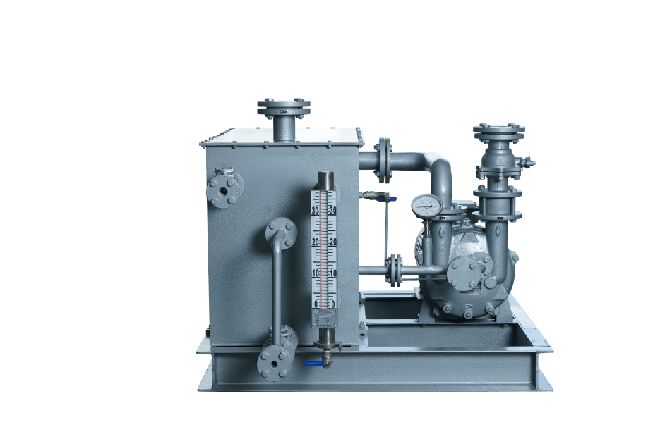 J2SK, JSK and J2BE closed circulating vacuum units include: vacuum pump, gas-liquid separator, heat exchanger, circulating pump, control system and other accessories. The use of vacuum pumps can be effectively increased by using working fluids other than water (e.g. liquids with lower saturated pressure such as ethylene glycol and transformer oil) than water. At the same time, it avoids the disadvantage that 2SK, SK, 2BE and other common liquid ring vacuum pumps are often used to extract some gases which pollute the working fluid, resulting in large amount of discharge of working fluid of vacuum pump, thus reducing the cost of customers. J2SK, JSK and J2BE closed cycle units can completely isolate the exchange between process gas and atmospheric environment, and discharge process gas to designated locations to avoid environmental damage. It is especially suitable for extracting inflammable, explosive and toxic gases.
