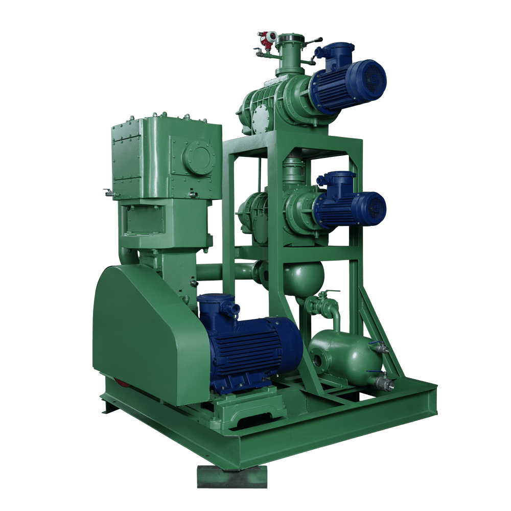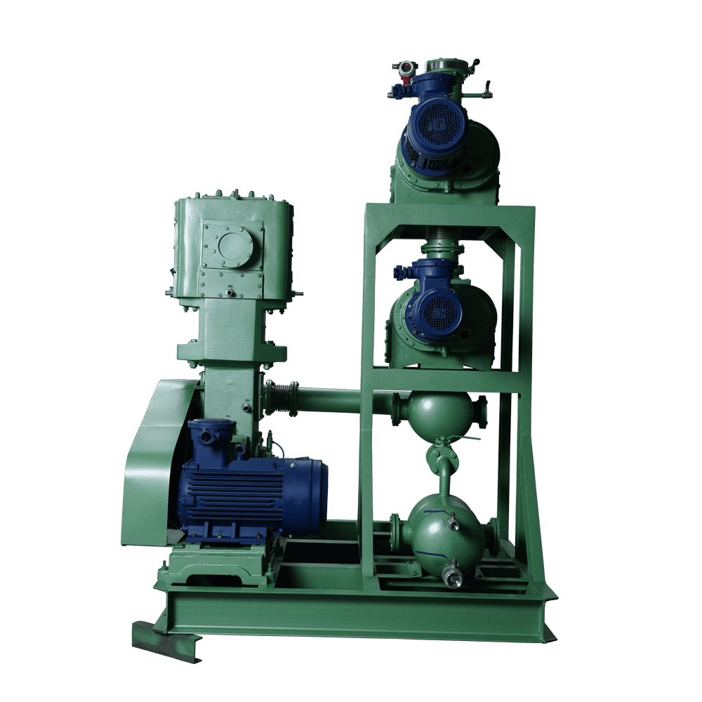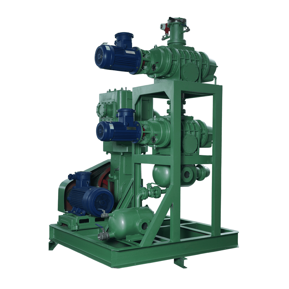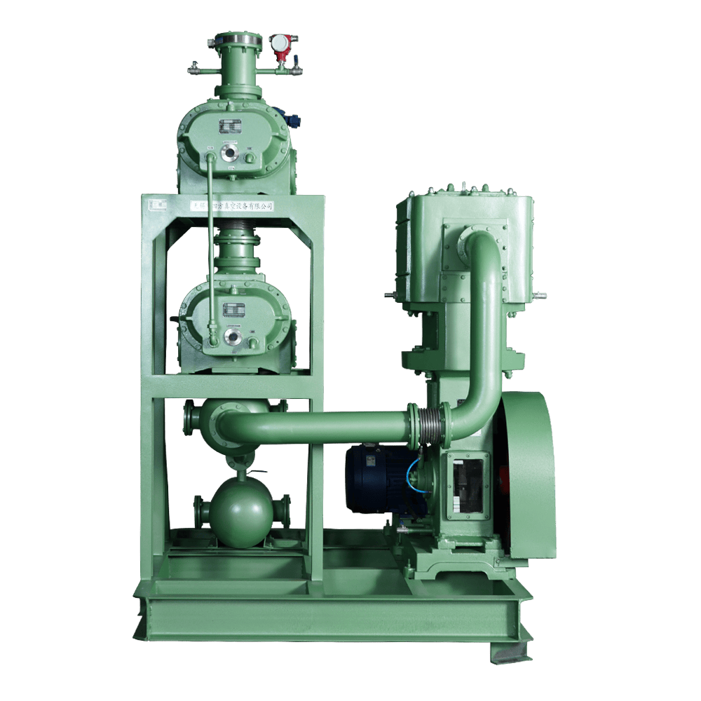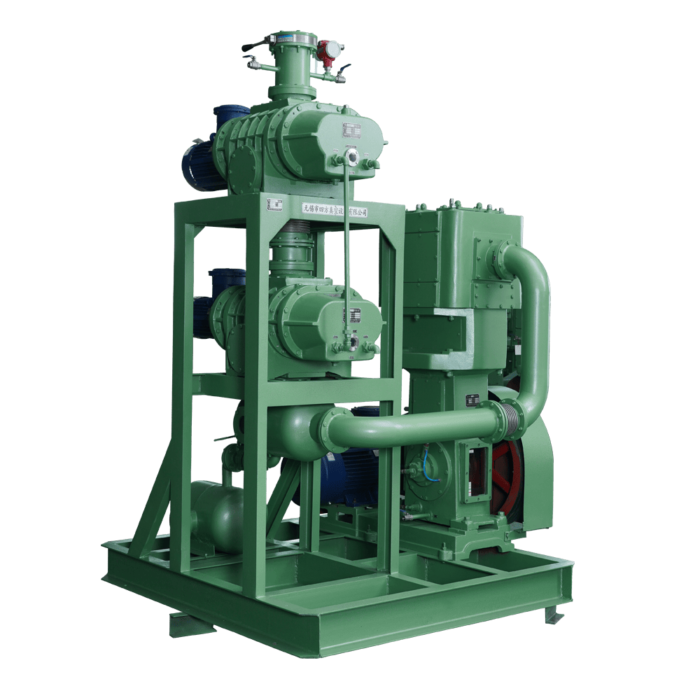 JZJW Roots vertical oil-free reciprocating pump unit is composed of ZJ Roots pump as main pump and WLW vertical oil-free pump as backing pump in series. Since WLW vacuum pump uses oil-free self-lubricating system and can obtain clean vacuum, after installing tail gas collecting device, gas which can not be solidified and collected can not be compressed in high vacuum system can be collected, and large amount of waste water produced by water ring unit can be avoided.